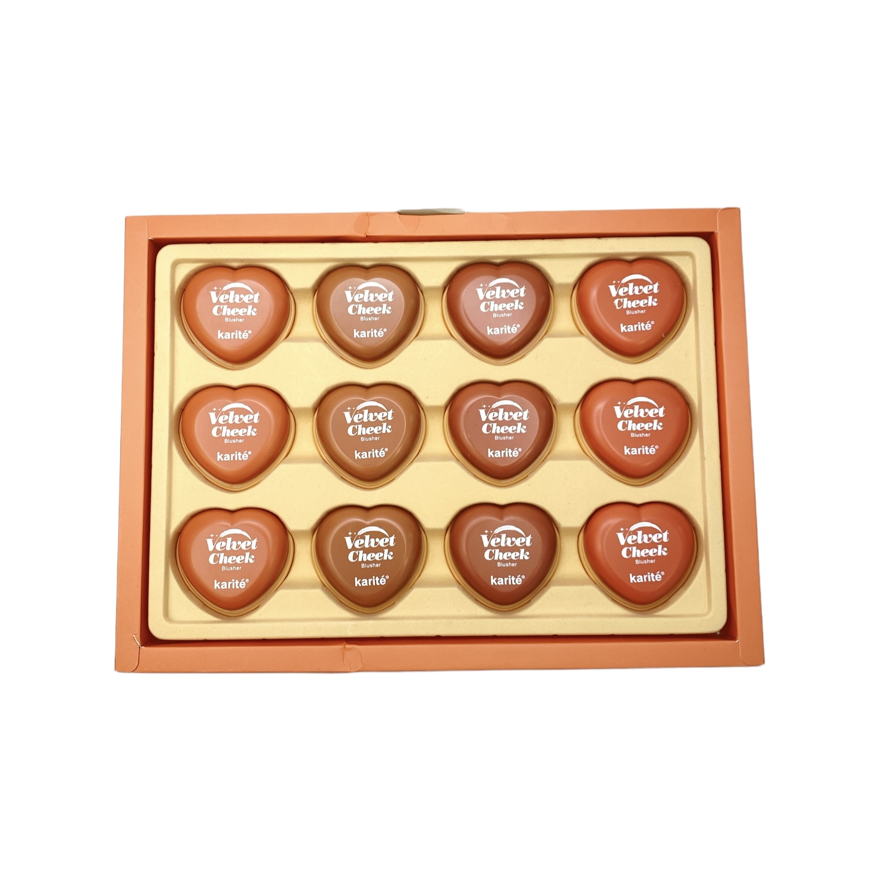 Rubor compacto forma de coraz贸n, colores nude